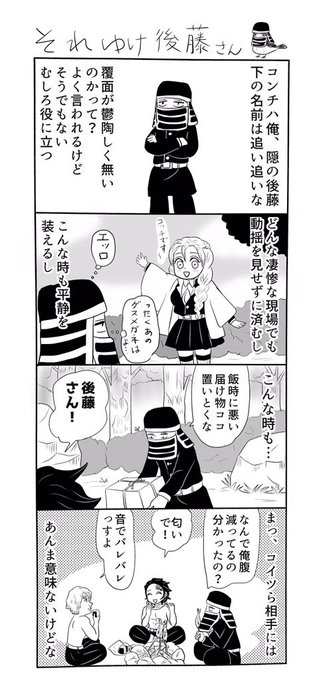 作者本の虫,hiro_akasaka, 公開日 , いいね33, リツイート数3, 作者ツイートついに、事後処理部隊「隠」の後藤さんの名前が明かされた鬼滅の刃。モブも大切にするのが良いですね。泣き、笑い、怒る炭治郎の周りの人たち。彼ら、彼女らを守るためにこそ、炭治郎Feb 10, · 設定キーワード: 鬼滅の刃 , 隠 , かまぼこ隊 作品 の ジャンル: 泣ける話 違反報告 ルール違反の作品はココから報告 作品は全て携帯でも見れます 同じような小説を簡単に作れます → 作成 この小説のブログパーツ 作者名: 雷紅 作成日時:年Jun 02, 21 · 後藤は以前から「鬼滅の刃」にハマっていることを公言しており、伊黒小芭内の自作イラストを公開してファンを驚かせたことも。 そんな彼女は今回、で生配信を行った際のリクエストに応える形で、胡蝶しのぶのコスプレ姿に挑戦した。